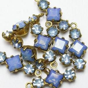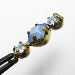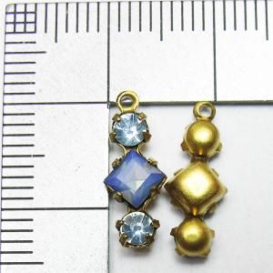 サイズ 4mmxスクエア(スワロフスキー・スターシャイン) 24pp=約3mm(スワロフスキー・ライトサファイア) 厚み 約3.7mm ヴィンテージ・スワロフスキー セッティング・ブラス この商品はヴィンテージでございます。 まれに小さなキズ、汚れなどが見られる事もありますが これもヴィンテージ特有の持ち味であると言う事を 理解された上でオーダーをお願い致します。