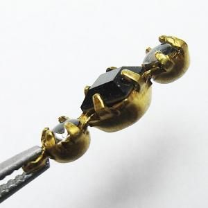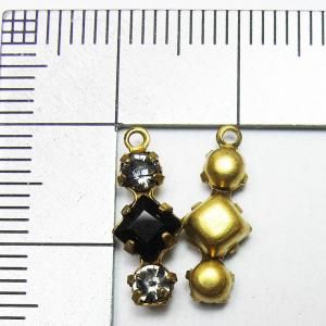 サイズ 4mmxスクエア(スワロフスキー・ジェット) 24pp=約3mm(スワロフスキー・ブラックダイアモンド) 厚み 約3.7mm ヴィンテージ・スワロフスキー セッティング・ブラス この商品はヴィンテージでございます。 まれに小さなキズ、汚れなどが見られる事もありますが これもヴィンテージ特有の持ち味であると言う事を 理解された上でオーダーをお願い致します。
