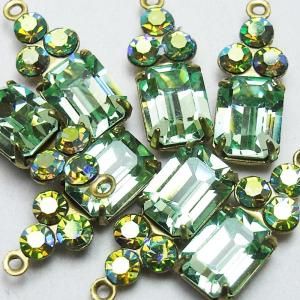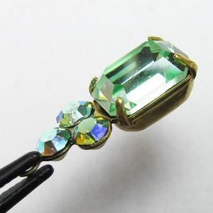 サイズ 8mmx6mm(スワロフスキー・クリソライト) 24pp=約3mm(チェコスロバキア・ペリドットAB) 厚み 約4.3mm ヴィンテージ・スワロフスキー セッティング・ブラス この商品はヴィンテージでございます。 まれに小さなキズ、汚れなどが見られる事もありますが これもヴィンテージ特有の持ち味であると言う事を 理解された上でオーダーをお願い致します。