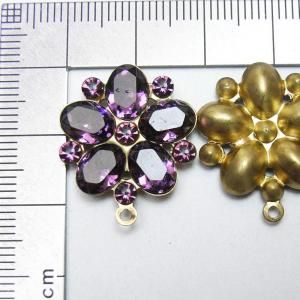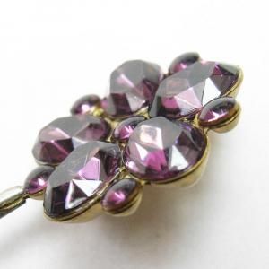 セッティングサイズ 19mm 8x6mmx5ヶ(スワロフスキー・アメジスト) 24pp=約3mmx6ヶ(スワロフスキー・アメジスト) 厚み 約4.3mm ヴィンテージ・スワロフスキー セッティング・ブラス この商品はヴィンテージでございます。 まれに小さなキズ、汚れなどが見られる事もありますが これもヴィンテージ特有の持ち味であると言う事を 理解された上でオーダーをお願い致します。