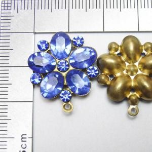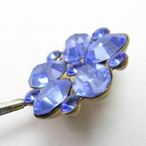セッティングサイズ 19mm 8x6mmx5ヶ(スワロフスキー・サファイア) 24pp=約3mmx6ヶ(スワロフスキー・サファイア) 厚み 約4.3mm ヴィンテージ・スワロフスキー セッティング・ブラス 少しクスミのあるサファイア色です この商品はヴィンテージでございます。 まれに小さなキズ、汚れなどが見られる事もありますが これもヴィンテージ特有の持ち味であると言う事を 理解された上でオーダーをお願い致します。