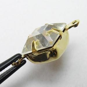 ラインストーンサイズ 8mmx8mm 厚み 約4.8mm ヴィンテージラインストーン・西ドイツ製 セッティング ゴールド 平年変化により、ストーンが少しだけ白んでます(画像参照) この商品はヴィンテージでございます。 まれに小さなキズ、汚れなどが見られる事もありますが これもヴィンテージ特有の持ち味であると言う事を 理解された上でオーダーをお願い致します。