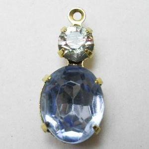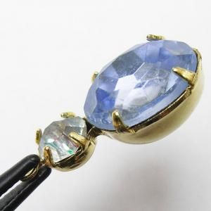 サイズ 10mmx8mm(チェコ製・ライトサファイア) 20ss=約4mm(西ドイツ・アイリス) 厚み 約5.9mm ヴィンテージ セッティング・ゴールド 20ssアイリスの色・柄の入り方に個体差があります (画像参照) この商品はヴィンテージでございます。 まれに小さなキズ、汚れなどが見られる事もありますが これもヴィンテージ特有の持ち味であると言う事を 理解された上でオーダーをお願い致します。