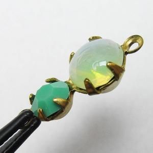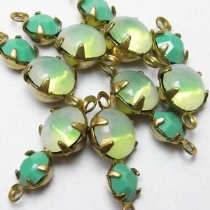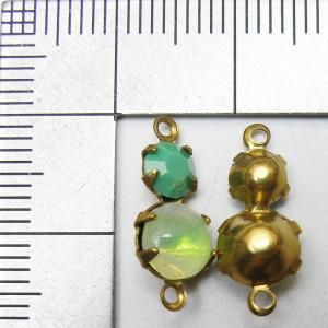 20ss=約4mm オペークグリーン(スワロフスキー) 30ss=約6mm グリーンサブリナ(西ドイツ) 厚み 約4.7mm セッティング・ブラス この商品はヴィンテージでございます。 まれに小さなキズ、汚れなどが見られる事もありますが これもヴィンテージ特有の持ち味であると言う事を 理解された上でオーダーをお願い致します。