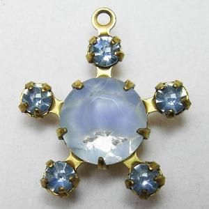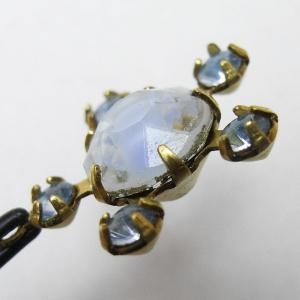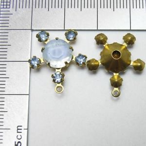 サイズ 約17mm 40ss=約8.5mm ブルーギブレ(西ドイツ) 24pp=約3mm ライトサファイア(スワロフスキー) 厚み 約6.1mm セッティング・ブラス この商品はヴィンテージでございます。 まれに小さなキズ、汚れなどが見られる事もありますが これもヴィンテージ特有の持ち味であると言う事を 理解された上でオーダーをお願い致します。
