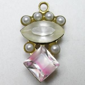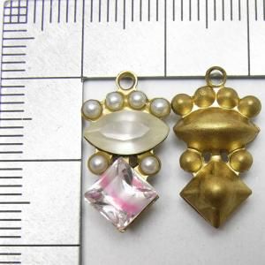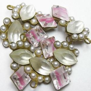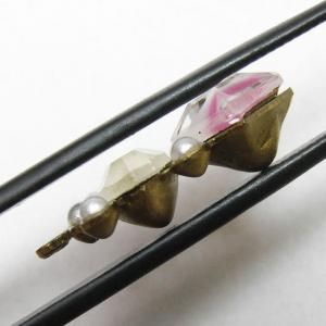 サイズ 約19mmx11mm 6x6mm ピンクギブレ(西ドイツ・スクエア) 10x5mm クリスタルフロスト(西ドイツ・ナベット) 2mm パール(中国・現行品) 厚み 約4.9mm セッティング・ブラス この商品はヴィンテージでございます。 まれに小さなキズ、汚れなどが見られる事もありますが これもヴィンテージ特有の持ち味であると言う事を 理解された上でオーダーをお願い致します。