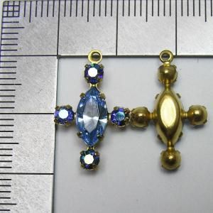 サイズ 20mmx13mm 10mmx5mm(アクアマリン・スワロフスキー) 24pp=約3mm(ライトサファイアAB・スワロフスキー) 厚み 約4.4mm ヴィンテージ セッティング・ブラス この商品はヴィンテージでございます。 まれに小さなキズ、汚れなどが見られる事もありますが これもヴィンテージ特有の持ち味であると言う事を 理解された上でオーダーをお願い致します。