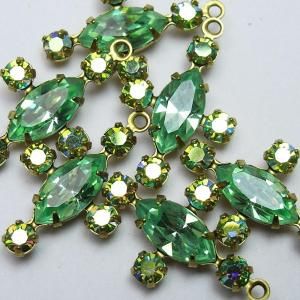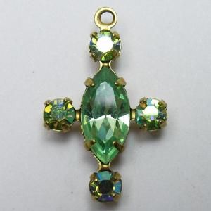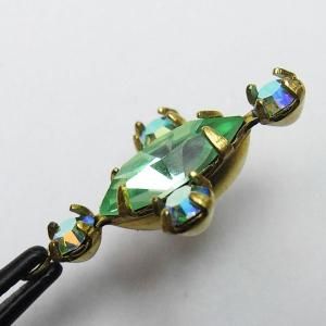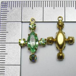 サイズ 20mmx13mm 10mmx5mm(ペリドット・スワロフスキー) 24pp=約3mm(ペリドットAB・チェコスロバキア) 厚み 約4.4mm ヴィンテージ セッティング・ブラス この商品はヴィンテージでございます。 まれに小さなキズ、汚れなどが見られる事もありますが これもヴィンテージ特有の持ち味であると言う事を 理解された上でオーダーをお願い致します。