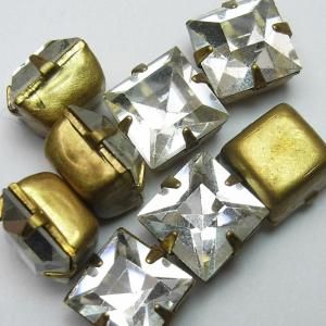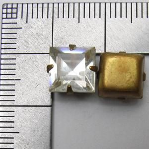 ラインストーンサイズ 8mmx8mm 厚み 約6.3mm ヴィンテージ・西ドイツ製 セッティング ブラス ※ヴィンテージのブラスセッティングのため、くすみや汚れが見られます※ ※経年変化のため、ラインストーンが白んで見える個体がございます※ (画像参照) この商品はヴィンテージでございます。 まれに小さなキズ、汚れなどが見られる事もありますが これもヴィンテージ特有の持ち味であると言う事を 理解された上でオーダーをお願い致します。