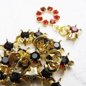 【10ヶセット】 スワロフスキーサイズ 12ss(約3.0mm) セッティング直径 6.5mm 高さ 4.5mm ゴールド・ヴィンテージ ※サイドからワイヤーやチェーンを通すことも可能です ※スワロの色は左上から2段目の(複数個写った)画像をご参照下さい この商品はヴィンテージでございます。 まれに小さなキズ、汚れなどが見られる事もありますが これもヴィンテージ特有の持ち味であると言う事を 理解された上でオーダーをお願い致します。