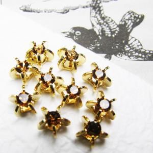 【10ヶセット】 スワロフスキーサイズ 12ss(約3.0mm) セッティング直径 6.5mm 高さ 4.5mm ゴールド・ヴィンテージ ※サイドからワイヤーやチェーンを通すことも可能です ※スワロの色は左上から2段目の(複数個写った)画像をご参照下さい この商品はヴィンテージでございます。 まれに小さなキズ、汚れなどが見られる事もありますが これもヴィンテージ特有の持ち味であると言う事を 理解された上でオーダーをお願い致します。
