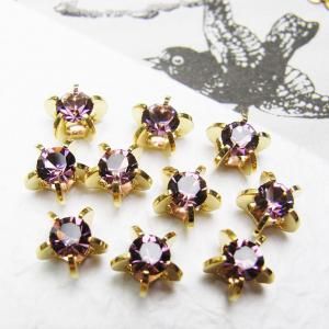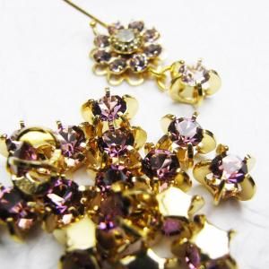 スワロフスキーサイズ 15ss(約3.6mm) セッティング直径 6.5mm 高さ 4.5mm ゴールド・ヴィンテージ ※サイドからワイヤーやチェーンを通すことも可能です ※スワロの色は左上から2段目の(複数個写った)画像をご参照下さい この商品はヴィンテージでございます。 まれに小さなキズ、汚れなどが見られる事もありますが これもヴィンテージ特有の持ち味であると言う事を 理解された上でオーダーをお願い致します。