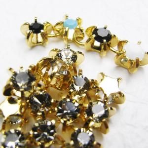 スワロフスキーサイズ 15ss(約3.6mm) セッティング直径 6.5mm 高さ 4.5mm ゴールド・ヴィンテージ ※サイドからワイヤーやチェーンを通すことも可能です ※スワロの色は左上から2段目の(複数個写った)画像をご参照下さい この商品はヴィンテージでございます。 まれに小さなキズ、汚れなどが見られる事もありますが これもヴィンテージ特有の持ち味であると言う事を 理解された上でオーダーをお願い致します。